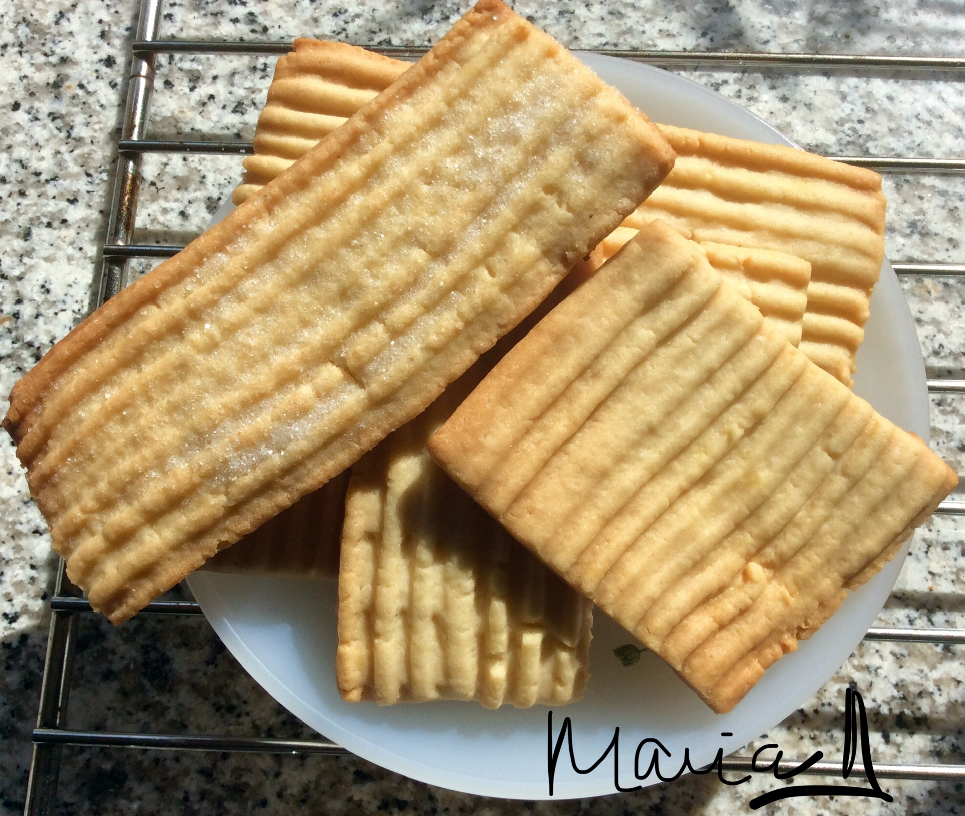 si disponemos de máquina como la kitchenAid,el proceso es sencillo: ponemos la pala y echamos los huevos con el azúcar, sin parar la máquina,seguimos añadiendo la manteca y los sobres de azúcar vainillada y las gotas de vainilla .Cuando veamos que todo está bien integrado, páramos la máquina y tamizamos en un bol la harina con la levadura y una pizca de sal; se la añadimos a lo que tenemos batido y sólo incorporamos, no batimos.Sacamos la masa y la ponemos en la mesa, para estirarla entre dos papeles de horno ,con el rodillo.La dejamos de un grosor de un par de centímetros y cortamos alargadas o cuadradas.Con un tenedor o un palillo de madera hacemos las hendiduras típicas de estas galletas y llevamos al horno ,precalentado a 180º C hasta que se vean doradas ....se hacen en pocos minutos.Sacamos y ponemos en rejilla a enfriar.....están buenísimas.